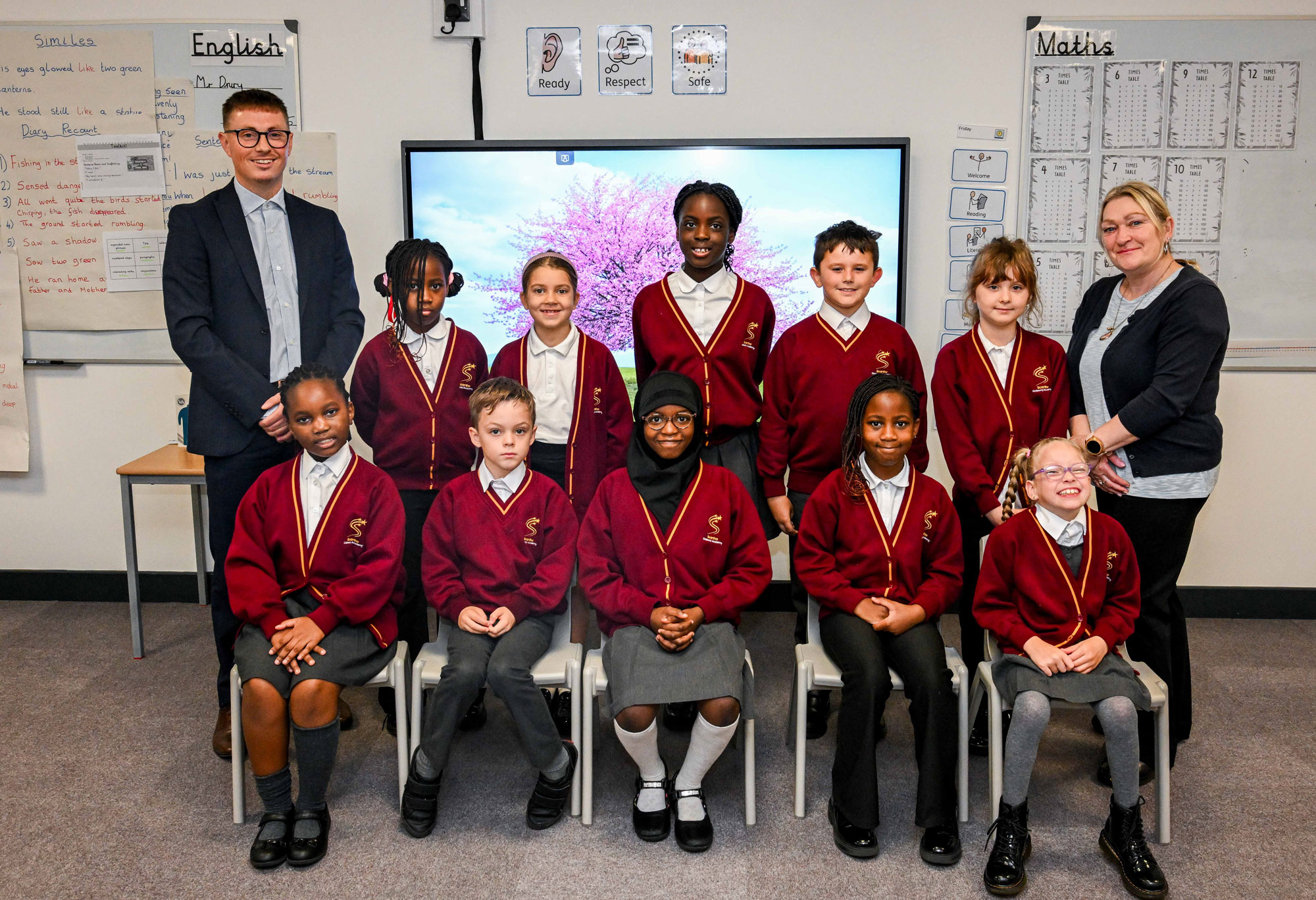 Teacher Mr Drury and teaching assistant Miss Hainesborough with Year 4’s Blossom class.